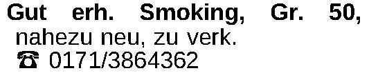 Gut erh. Smoking, nahezu neu, zu verk. ‡ 0171/3864362 Gr. 50,Kontakt