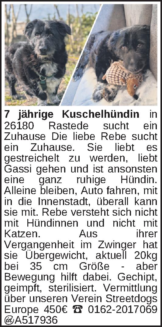 Anzeigentitel: 7 jährige Kuschelhündin in 26180 Rastede sucht ein Zuhause