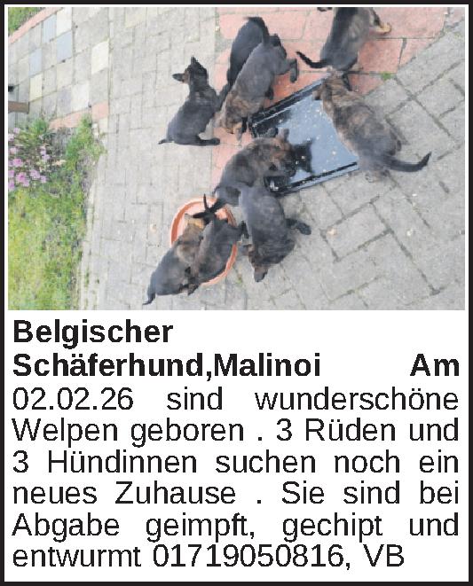 Erscheinungsdatum: Anzeige vom 31.3.2026 in der Rubrik "Tiere und Zubehör"