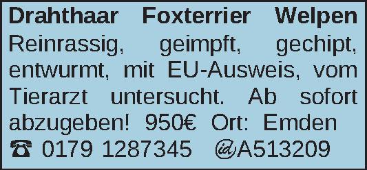 Anzeigentitel: Drahthaar Foxterrier Welpen