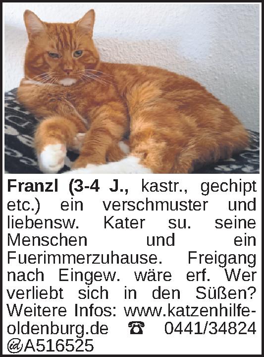 Anzeigentitel: Franzl (3-4 J., kastr., gechipt etc.)
