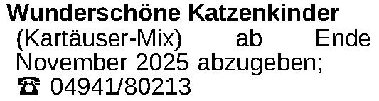 Wunderschöne Katzenkinder (Kartäuser-Mix) ab Ende November 2025 abzugeben; ‡ 04941/80213Kontakt