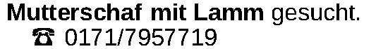 Mutterschaf mit Lamm gesucht. 0171/7957719