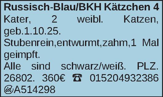 Erscheinungsdatum: Anzeige vom 16.12.2025 in der Rubrik "Tiere und Zubehör"