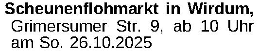 Scheunenflohmarkt in Wirdum, Grimersumer Str. 9, ab 10 Uhr am So. 26.10.2025Kontakt