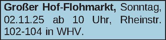 Großer Hof-Flohmarkt, Sonntag, 02.11.25 ab 10 Uhr, Rheinstr. 102-104 in WHV.