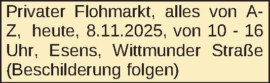 Privater Flohmarkt, alles von AZ, heute, 8.11.2025, von 10 - 16 Uhr, Esens, Wittmunder Straße (Beschilderung folgen)