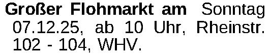 Großer Flohmarkt am Sonntag 07.12.25, ab 10 Uhr, Rheinstr. 102 - 104, WHV.Kontakt