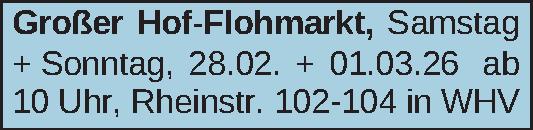 Großer Hof-Flohmarkt, Samstag + Sonntag, 28.02. + 01.03.26 ab 10 Uhr, Rheinstr. 102-104 in WHVKontakt