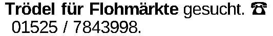 Trödel für Flohmärkte gesucht. ‡ 01525 / 7843998.Kontakt