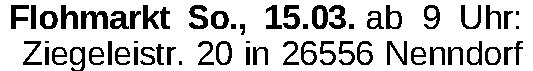 Flohmarkt So., 15.03. ab 9 Uhr: Ziegeleistr. 20 in 26556 NenndorfKontakt