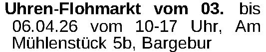 Uhren-Flohmarkt vom 03. bis 06.04.26 vom 10-17 Uhr, Am Mühlenstück 5b, BargeburKontakt